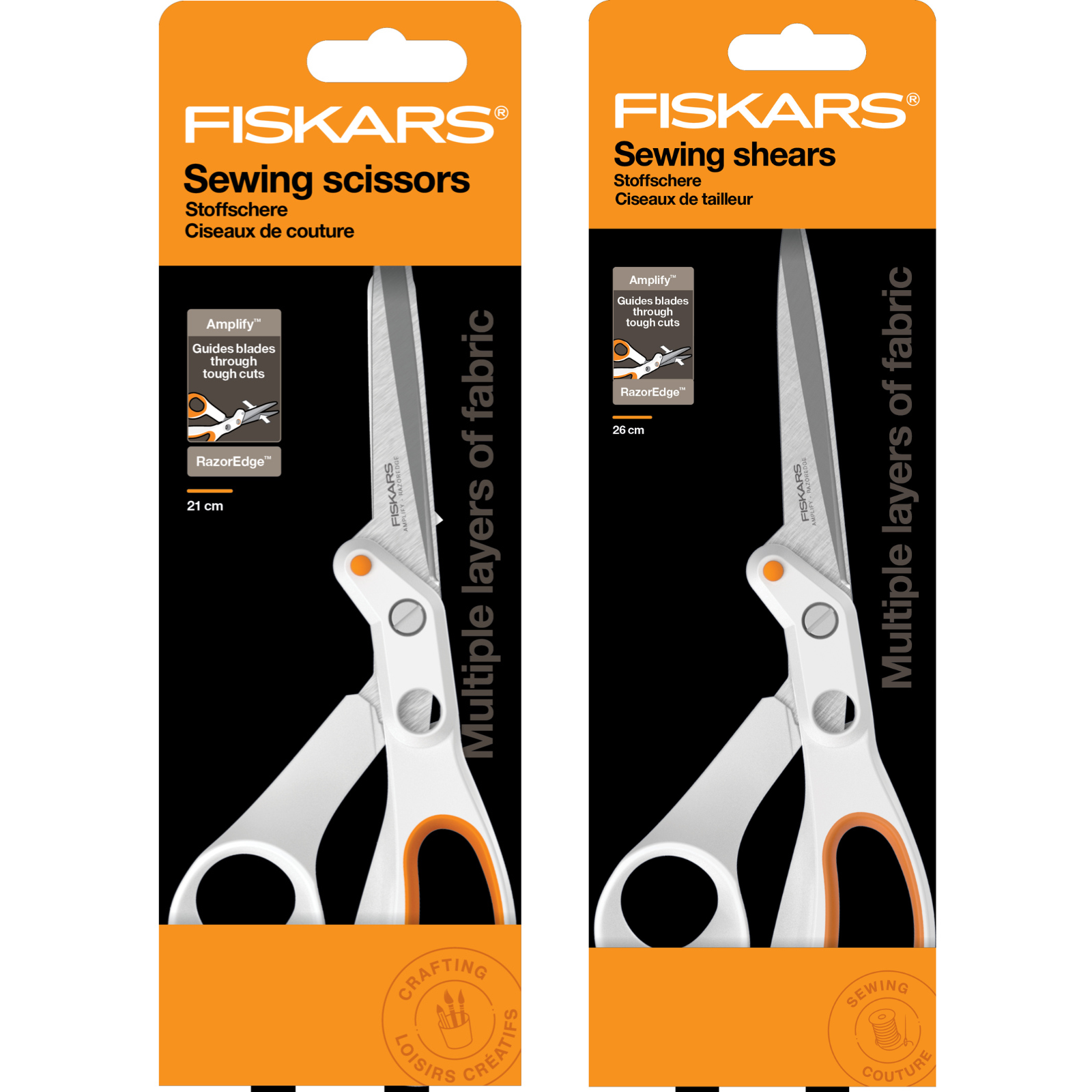 - Fiskars amplify razor-edge dressmaker's scissors with a soft grip