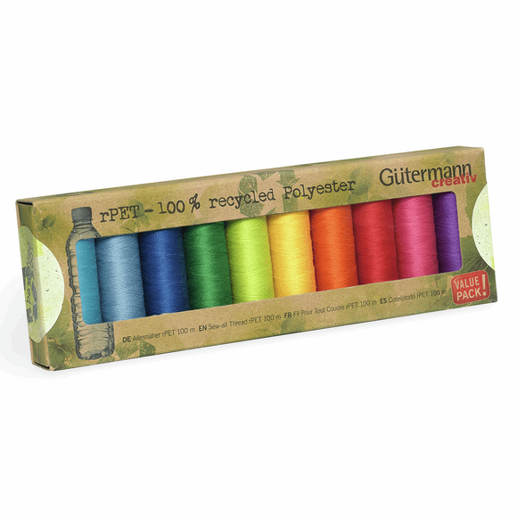 Gutermann Sew All Thread Set Recycled (rPET) - 10 x Reels 100m - Assorted