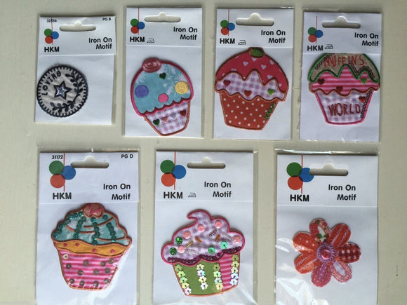 HKM Cup Cake Star Flower Applique Motif Patches Iron On Sewing Crafts Sequins