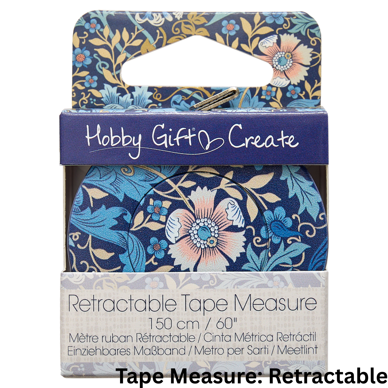 150cm/60in retractable tape measure with woodblock Arts & Crafts inspired printed design