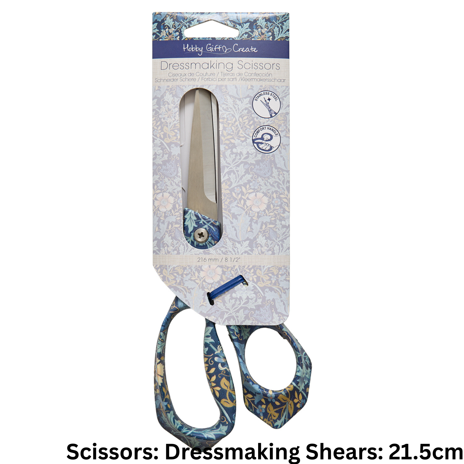 21.5cm/8.5in premium dressmaking scissors with woodblock Arts & Crafts inspired printed design on handles