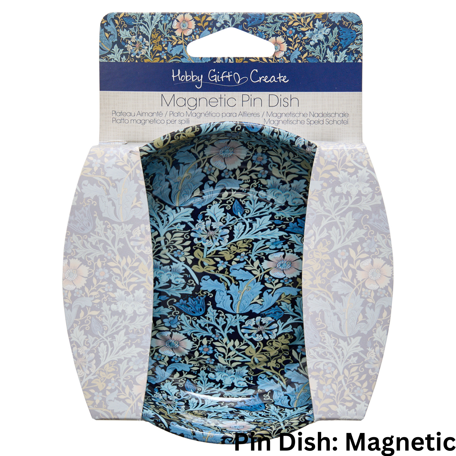 Premium magnetised pin dish in a woodblock Arts & Crafts inspired printed design