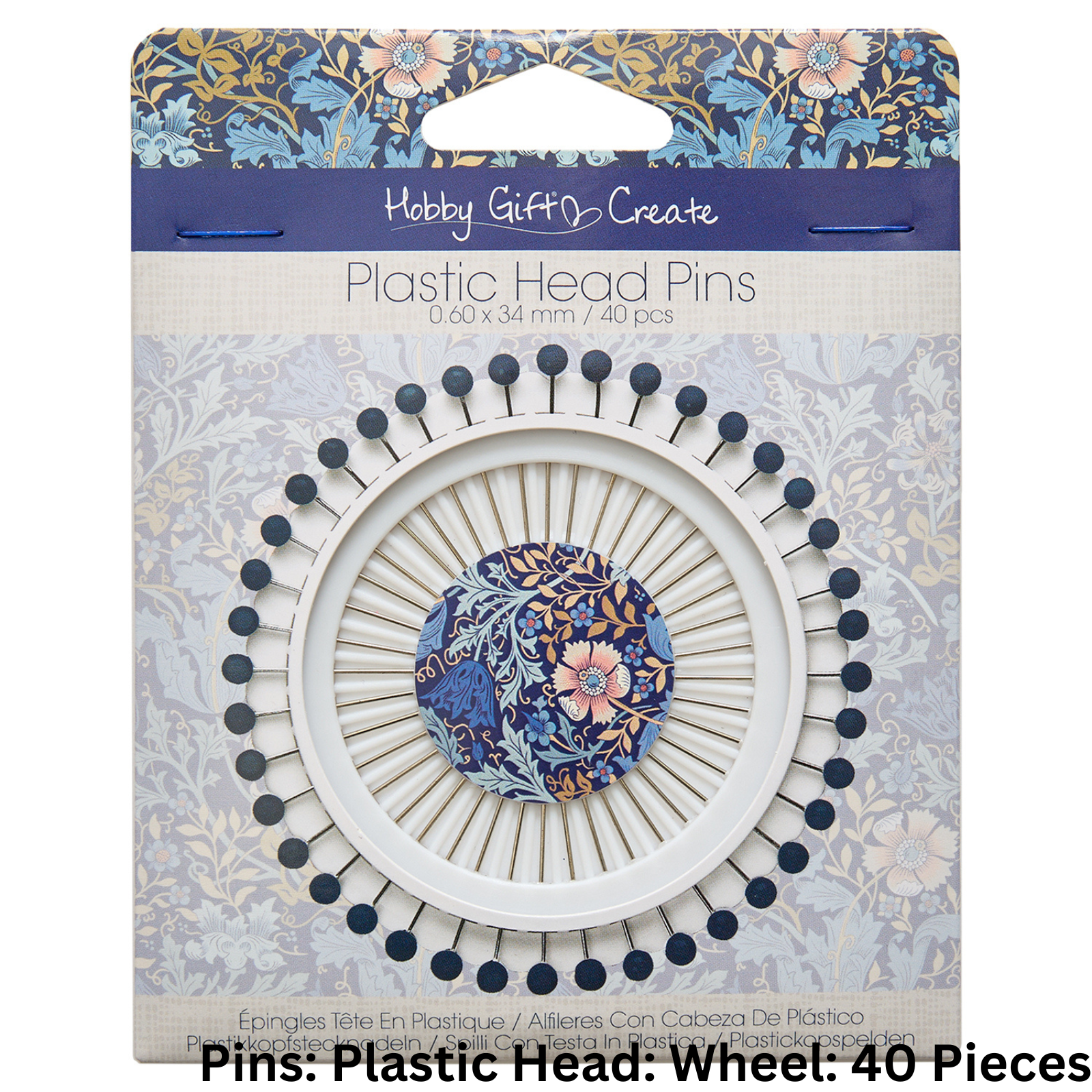 Plastic head pins in a rosette wheel holder with woodblock Arts & Crafts inspired printed centre design