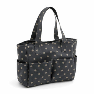HobbyGift Knitting Craft Bag - Matt PVC: Charcoal Polka Dot Design
