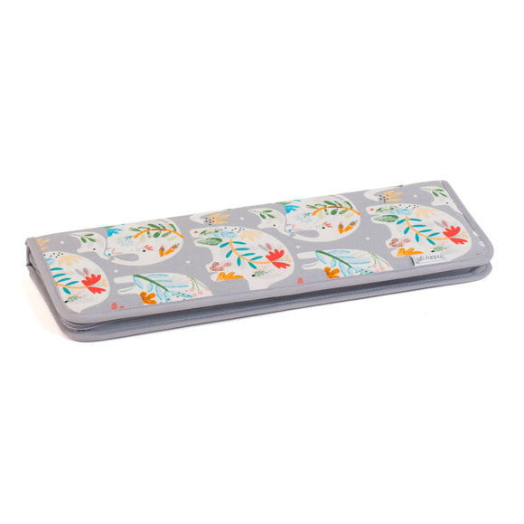 HobbyGift Knitting Pin Case -Hard - with Tape Measure - Empty - Elephants