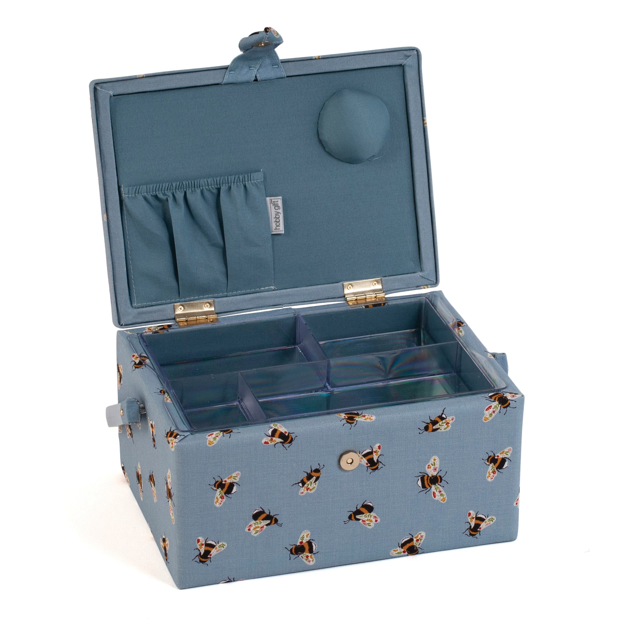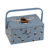 HobbyGift Sewing Box (M) - Embroidered Lid - Blue Bees