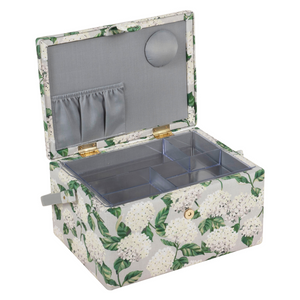 - Medium-sized sewing box made from cotton fabric with a Hydrangea design