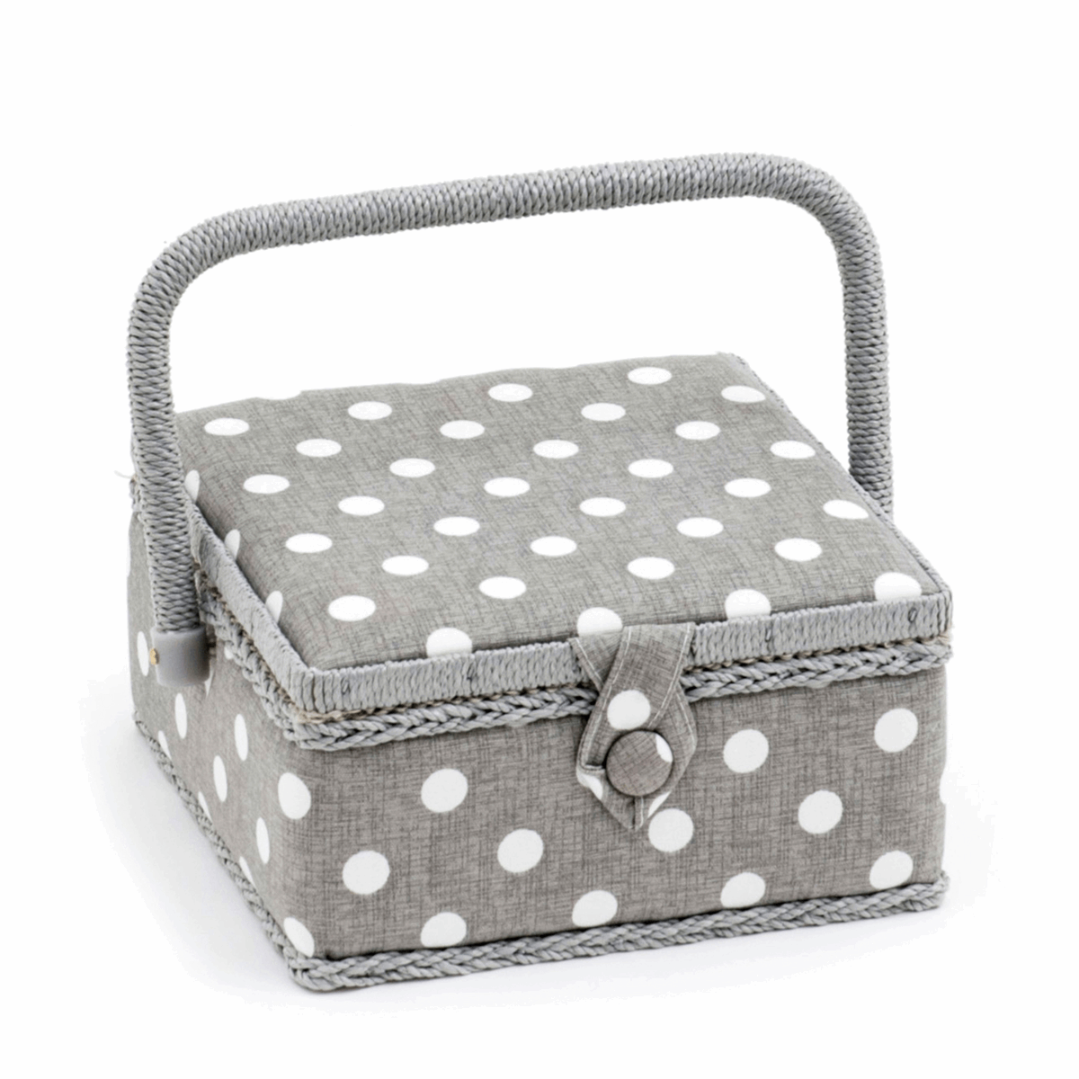HobbyGift Small Sewing Box - Square - Grey Linen Polka Dot