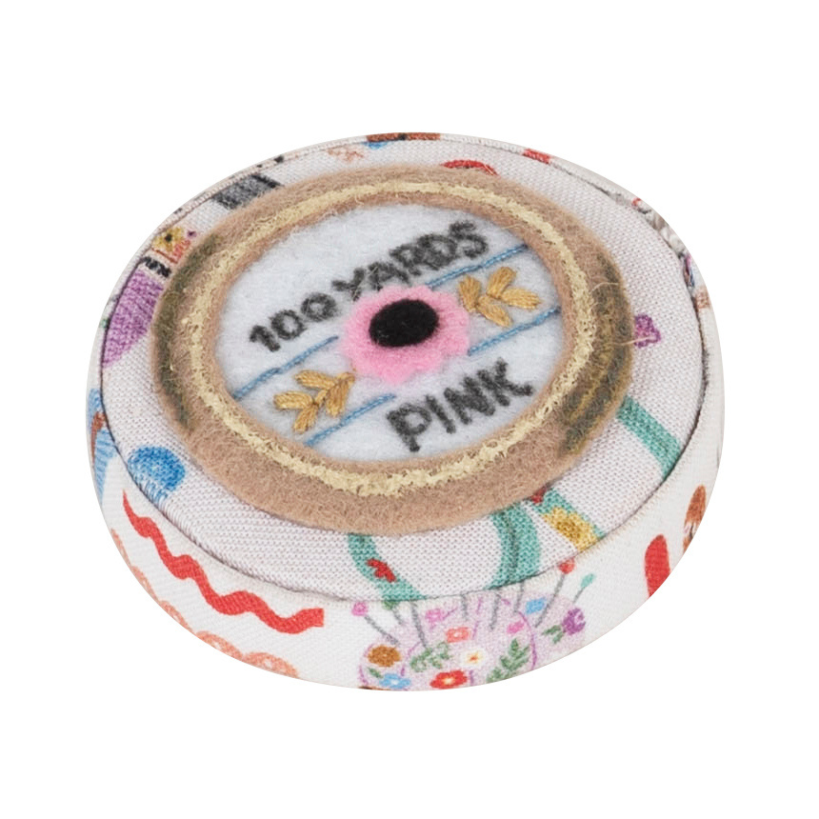 - Retractable tape measure covered in cotton fabric in a Haby Notions design