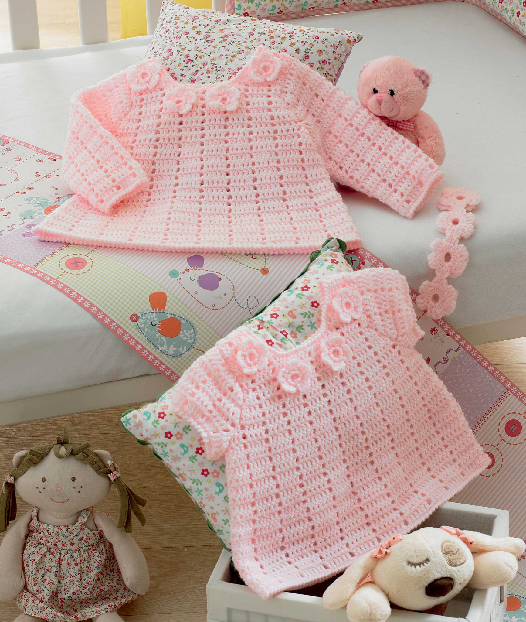 - This crochet book includes baby patterns to make an array of lovely garments including: sweaters, cardigans, hats, boots, tunics, long and short sleeved jackets and more!