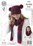 King Cole Crochet Pattern 4763 - Top with Yoke& Accessories Riot DK