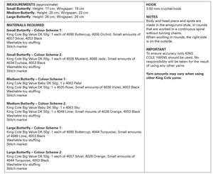 King Cole Crochet Pattern Amigurumi Crocheted Butterflies: Crocheted In King Cole Big Value DK 50g - 9160