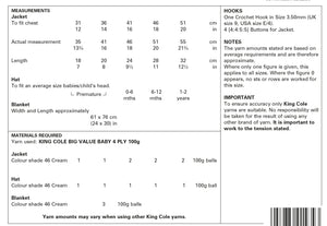 King Cole Crochet Pattern Baby Jacket, Hat & Blanket - 4ply 5561