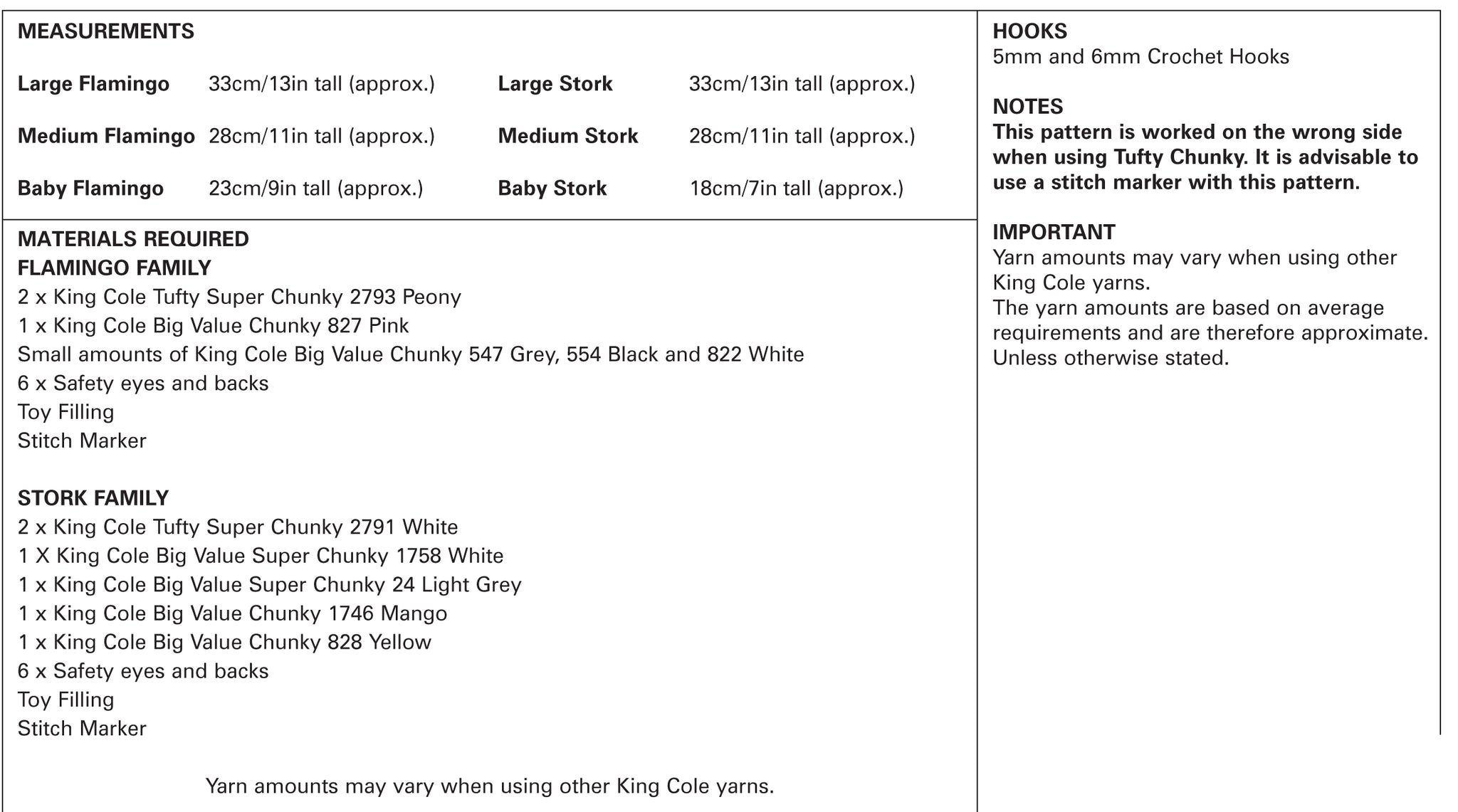 King Cole Crochet Pattern Stork & Flamingo Families - Chunky 9091