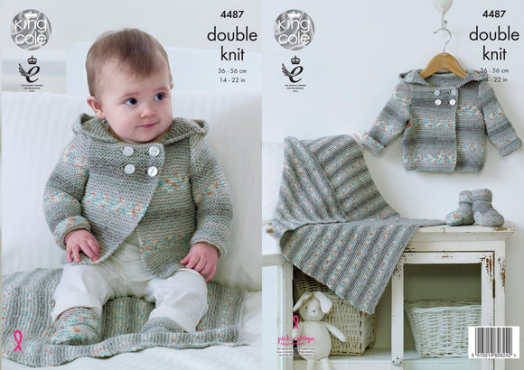 King Cole Knitting Pattern 4487 - Baby Hooded Jacket/Blanket/Boot DK