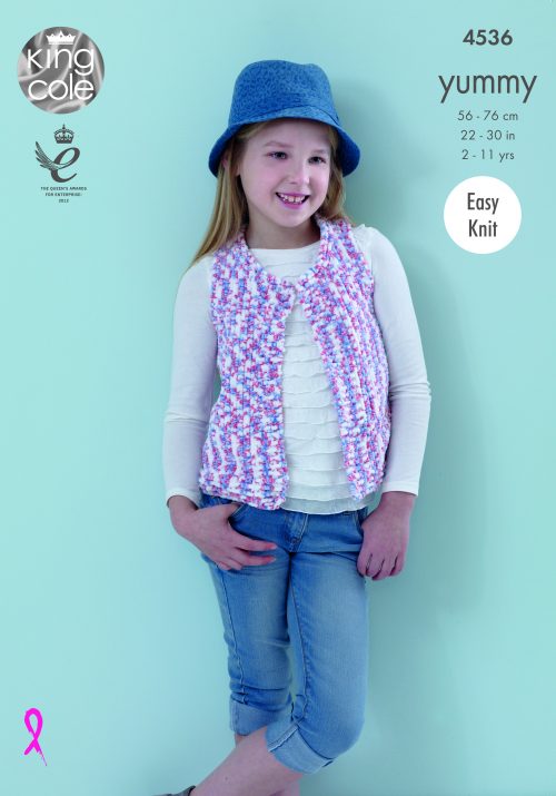 King Cole Knitting Pattern 4536 - Child's Waistcoat/Cardigan/Hat Yummy