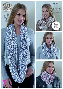 King Cole Knitting Pattern 4541 Ladies/Girls Snood Yummy