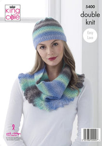 King Cole Knitting Pattern 5400 - Ladies Shawl, Cowl, Hat DK