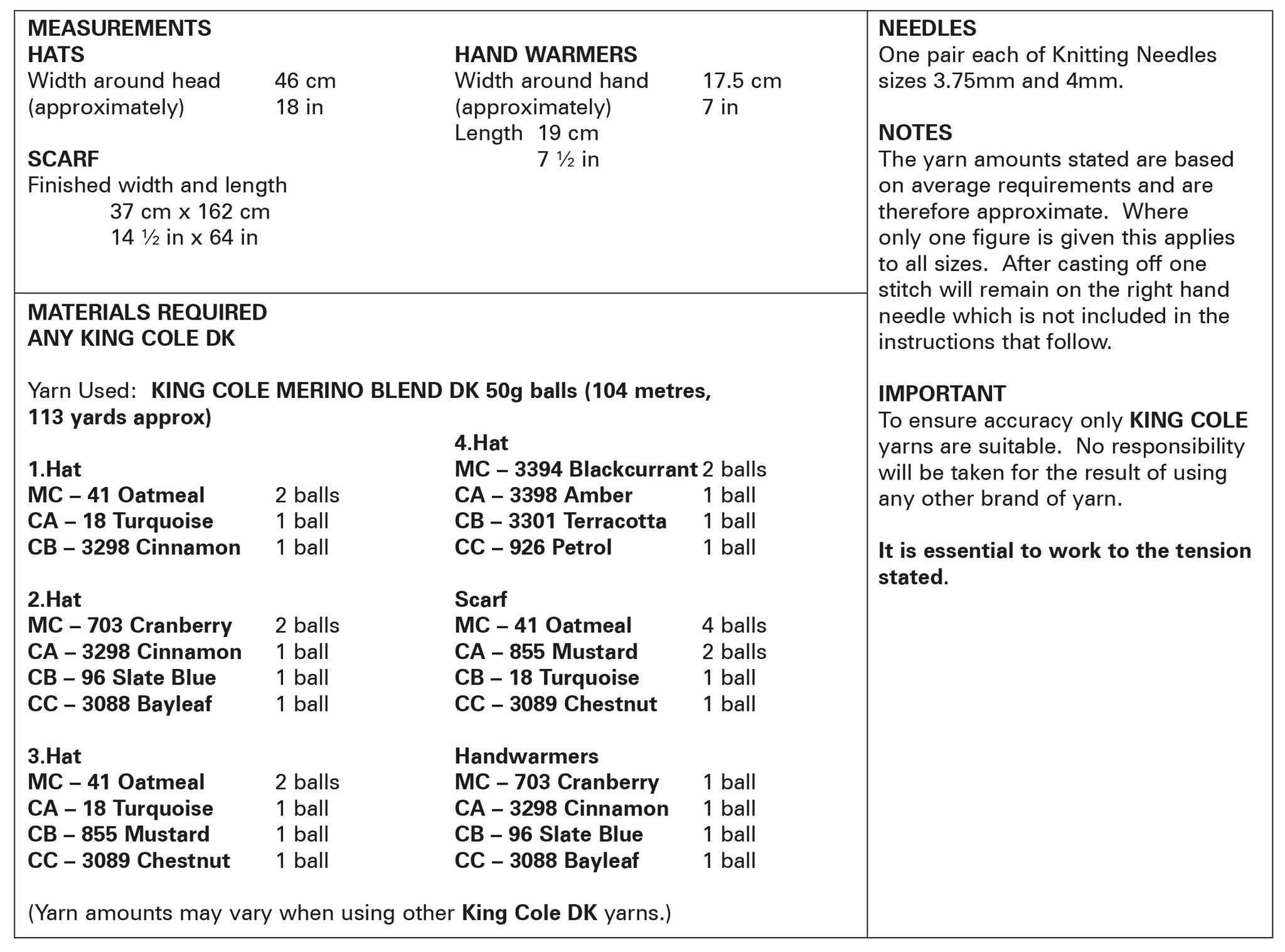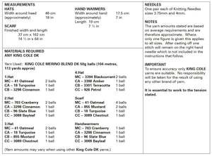 - Please see second image for suggested yarns, needle sizes and quantities required to make the garments