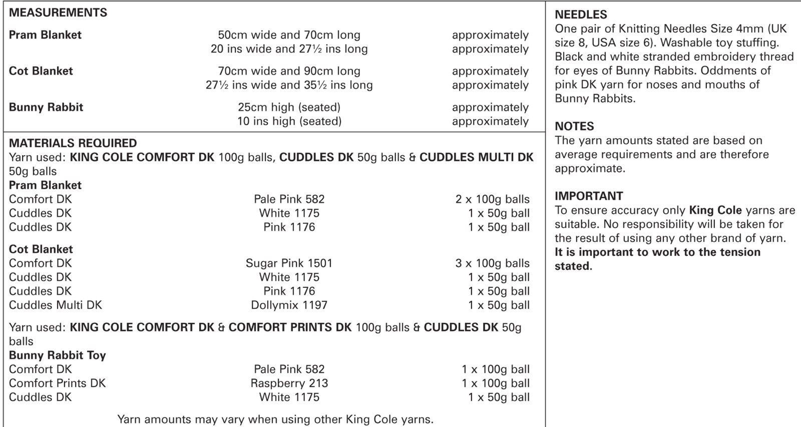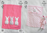 King Cole Knitting Pattern Baby Blankets & Bunny Rabbit Toy Set 4006