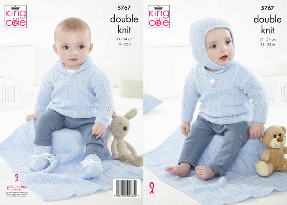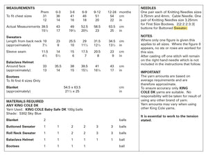 King Cole Knitting Pattern Blanket, Sweaters, Balaclava Helmet & Bootees - DK 5767