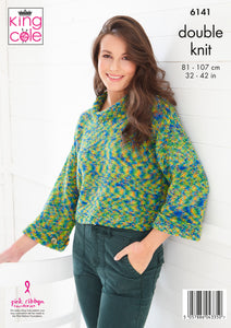 King Cole Knitting Pattern Cardigan and Sweater - Knitted in Jitterbug DK 6141