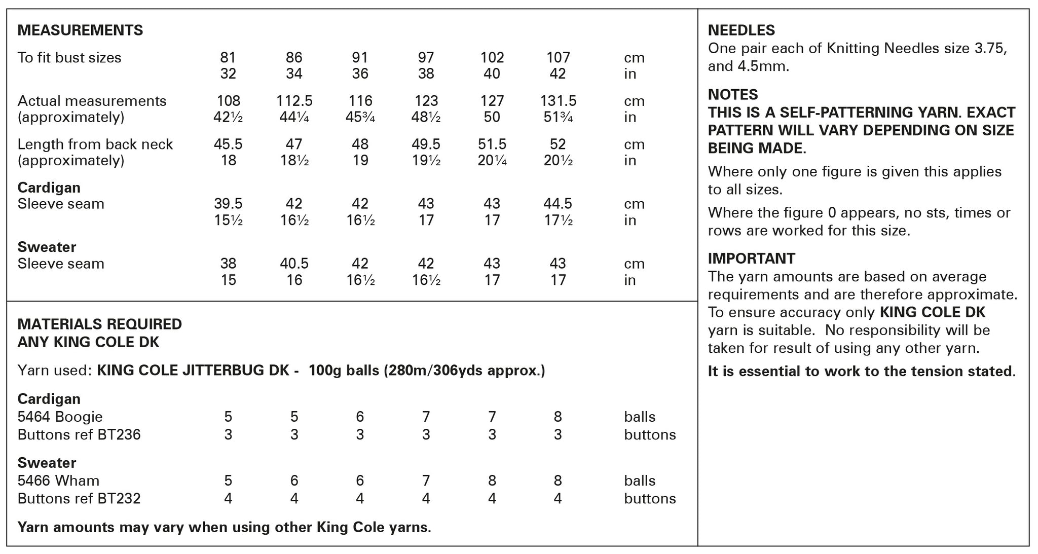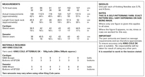 - Please see second image for suggested yarns, needle sizes and quantities required to make the garments