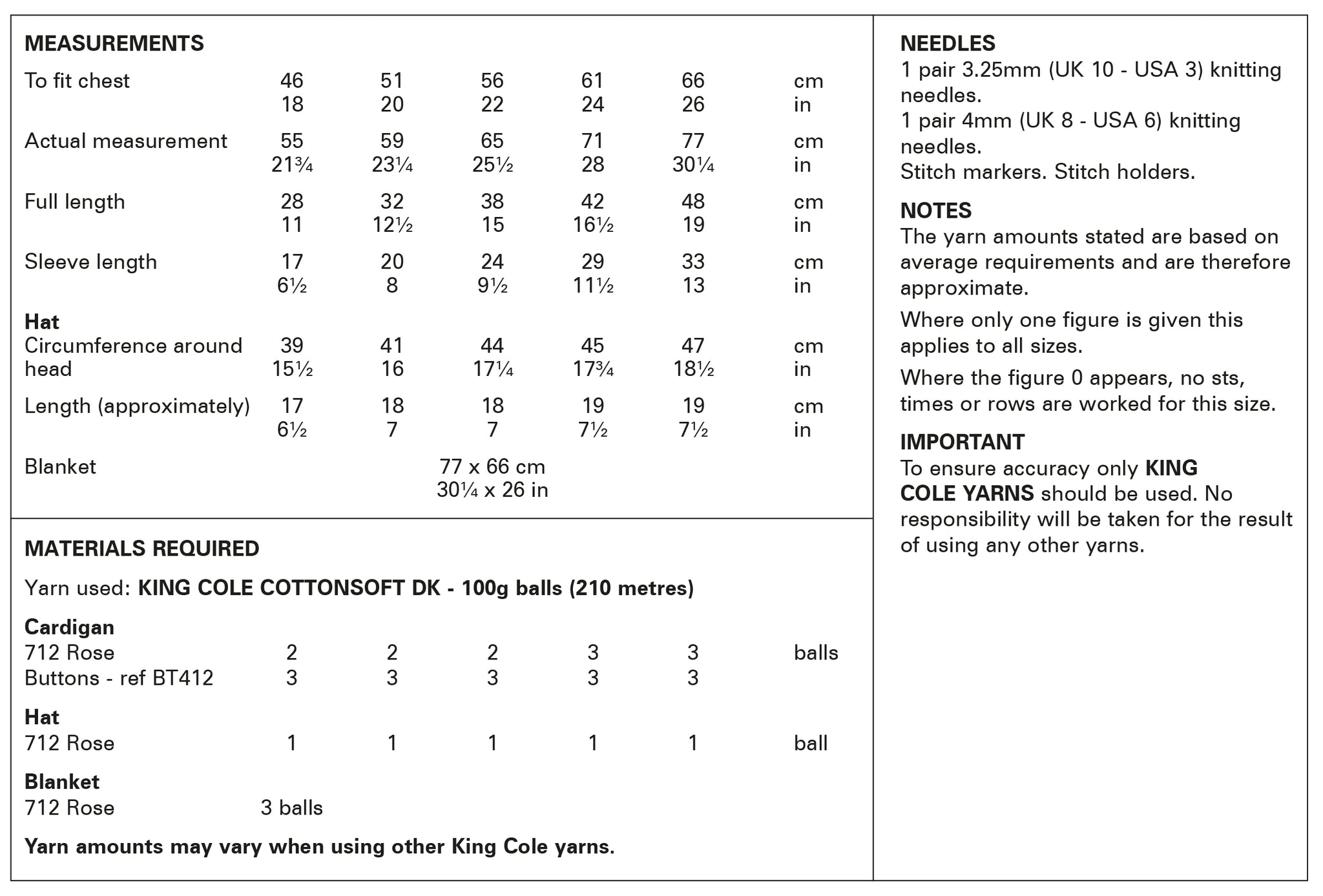 - Pattern cardigan, hat and blanket in Bamboo Cotton DK
