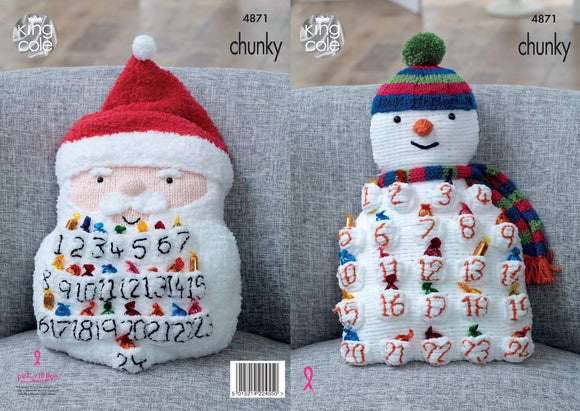 King Cole Knitting Pattern Christmas Snowman & Santa Advent Cushions - Chunky 4871
