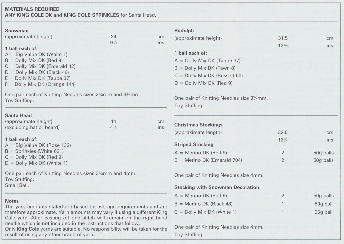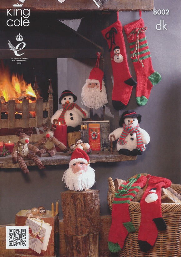 King Cole Knitting Pattern Christmas Snowman, Santa Head, Rudolf and Christmas Stockings - Double Knit 8002