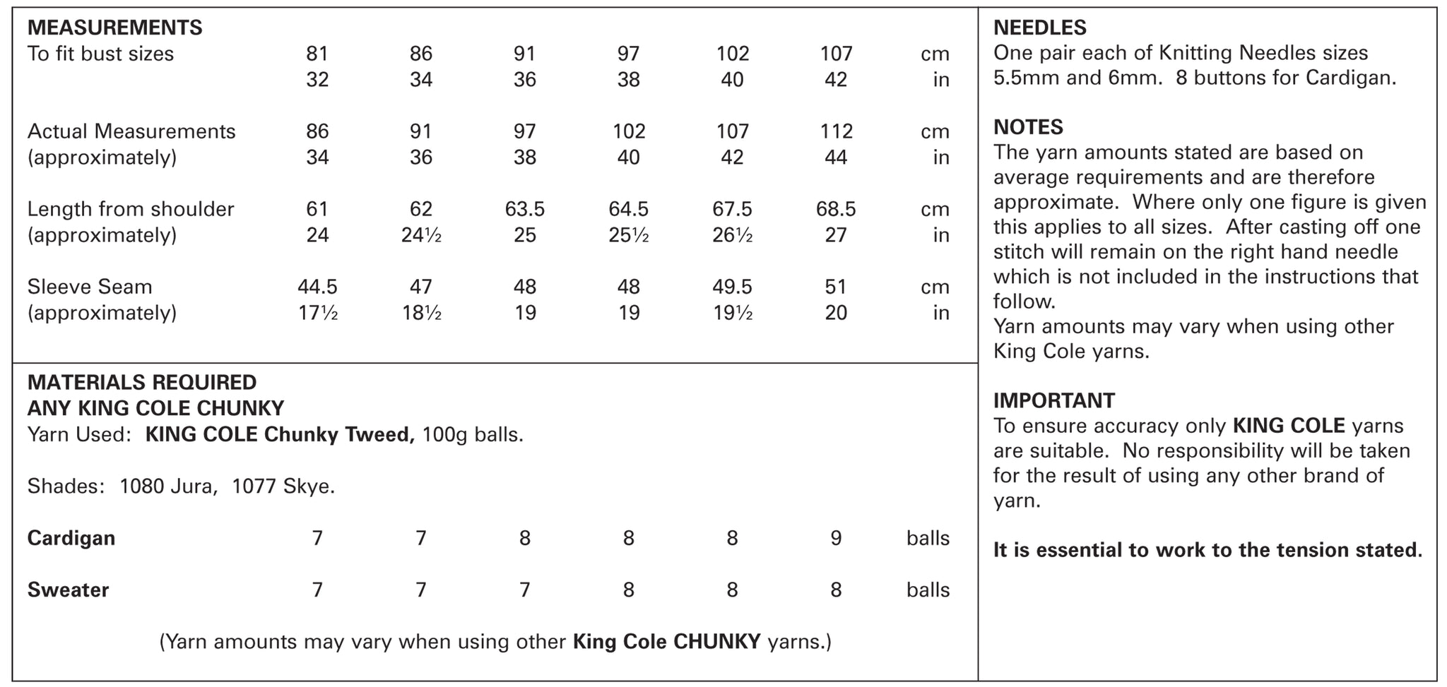 - Knitting Pattern Cardigan and Sweater in Chunky Tweed