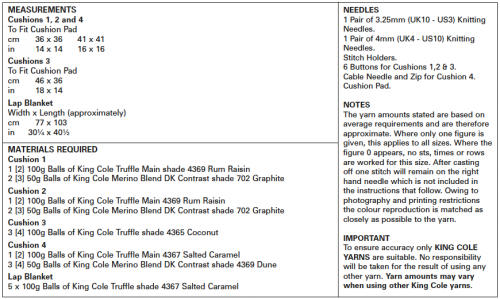 King Cole Knitting Pattern Cushions & Lap Blanket Truffle & dk 5518