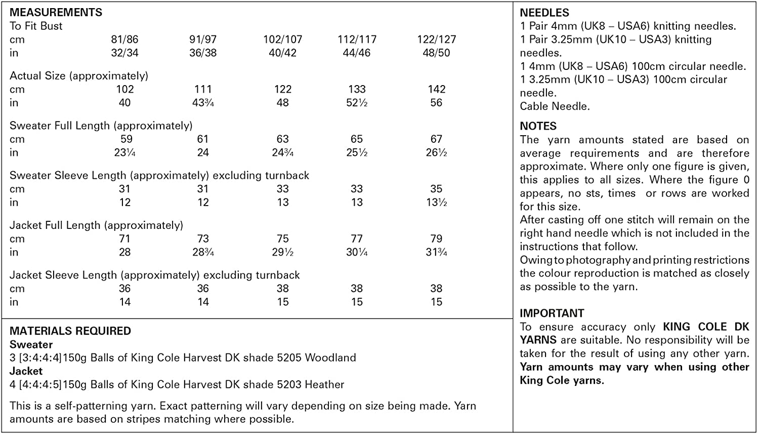 King Cole Knitting Pattern Double Knit Harvest DK - Cable Sweater & Jacket 5789