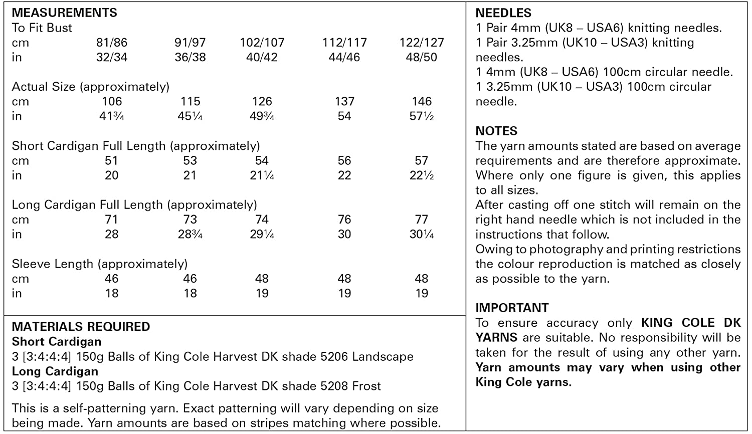 - Suitable for King Cole Harvest DK & Double Knit Yarn