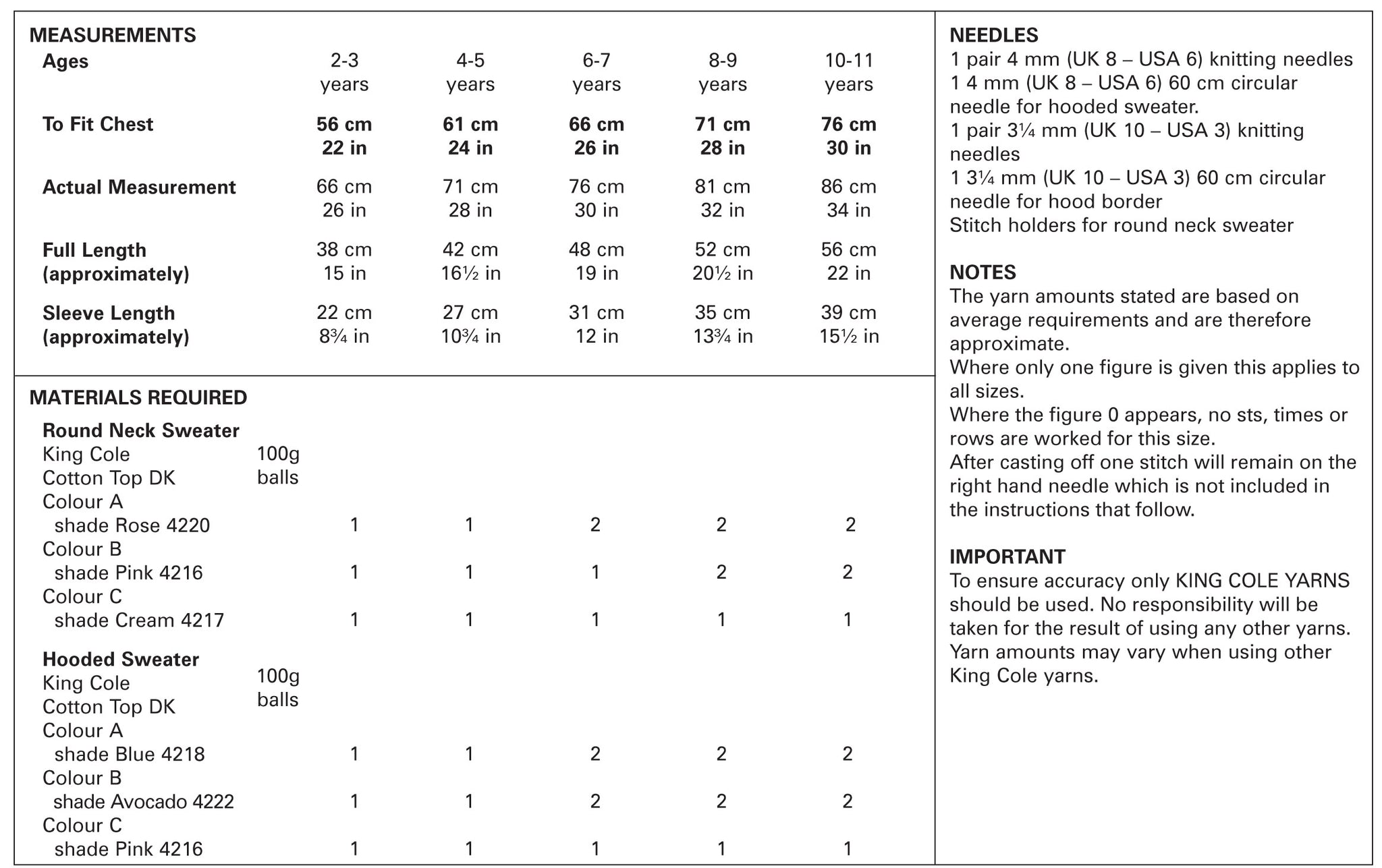 - Knitting pattern by King Cole: Pattern 5376