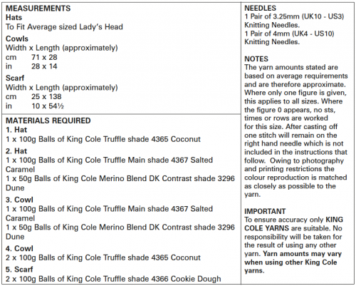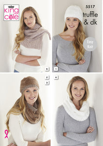 King Cole Knitting Pattern Hats, Cowls & Scarf Truffle & dk 5517
