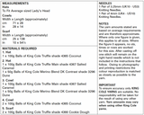 - Please see the second image for garment/item sizes and number of balls/needles required.