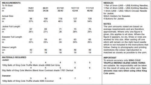 King Cole Knitting Pattern Jacket & Sweater Truffle & Aran 5515