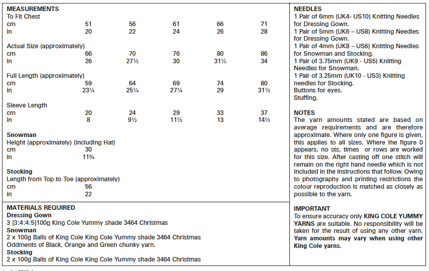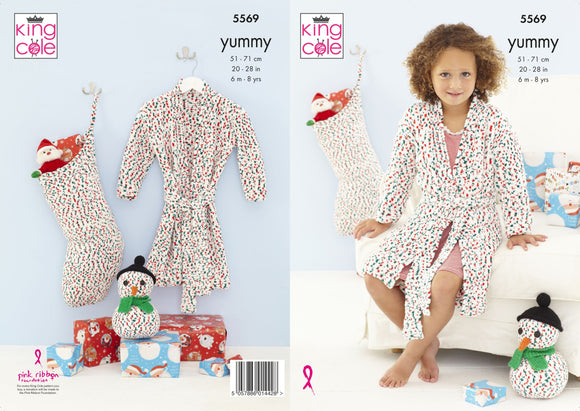 King Cole Knitting Pattern Kids Christmas Dressing Gown, Snowman & Stocking - Yummy Yarn 5569
