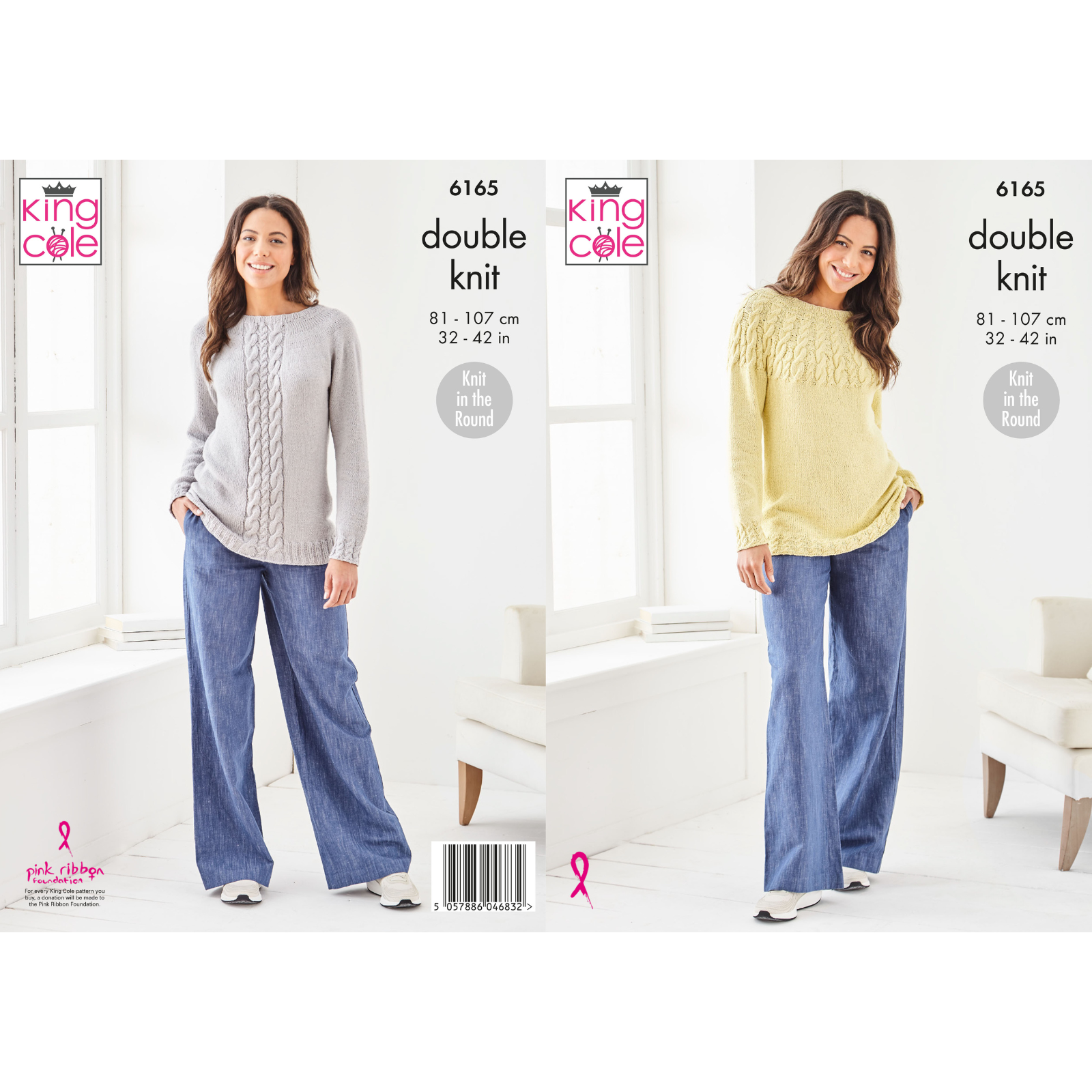 King Cole Knitting Pattern Knit in the Round Sweaters: Knitted in King Cole Finesse Cotton Silk DK 6165