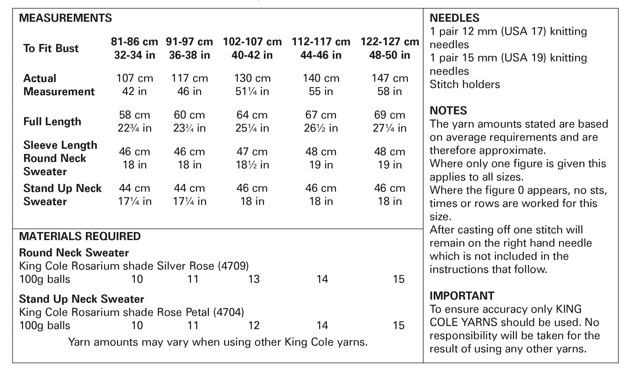 King Cole Knitting Pattern Ladies Round & Stand Up Neck Sweaters - Rosarium 5754