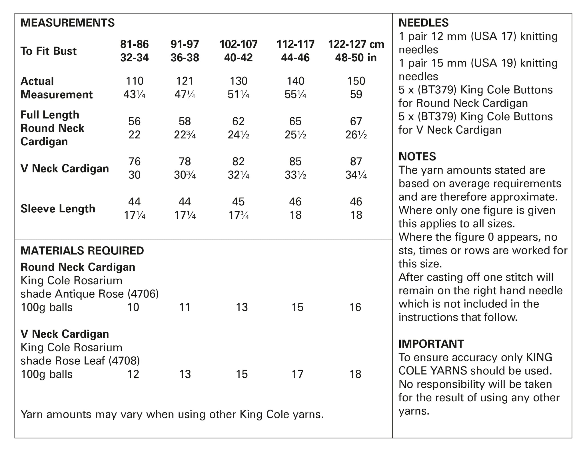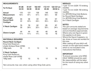 King Cole Knitting Pattern Ladies Round & V Neck Cardigans - Rosarium 5752