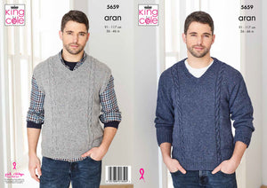 King Cole Knitting Pattern Mens Sweater & Sleeveless Sweater - Aran 5659