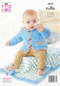 King Cole Knitting Pattern Pram Blanket, Jacket, Gilet & Hat Truffle 5618