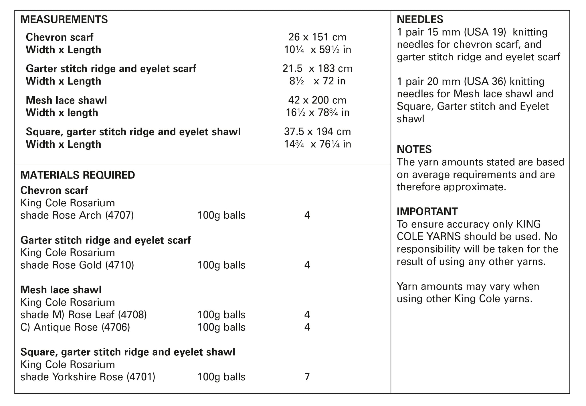 King Cole Knitting Pattern Scarves - Rosarium 5757
