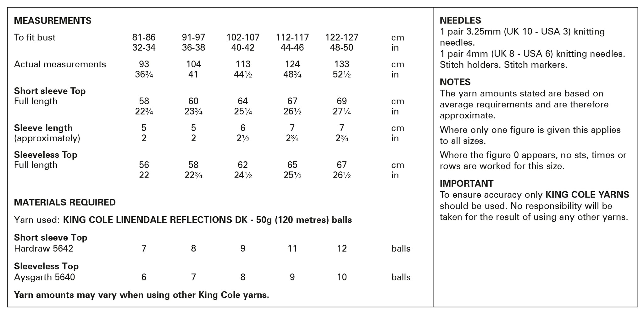 King Cole Knitting Pattern Short Sleeve and Sleeveless Top - Knitted in Linendale Reflections DK 6128