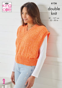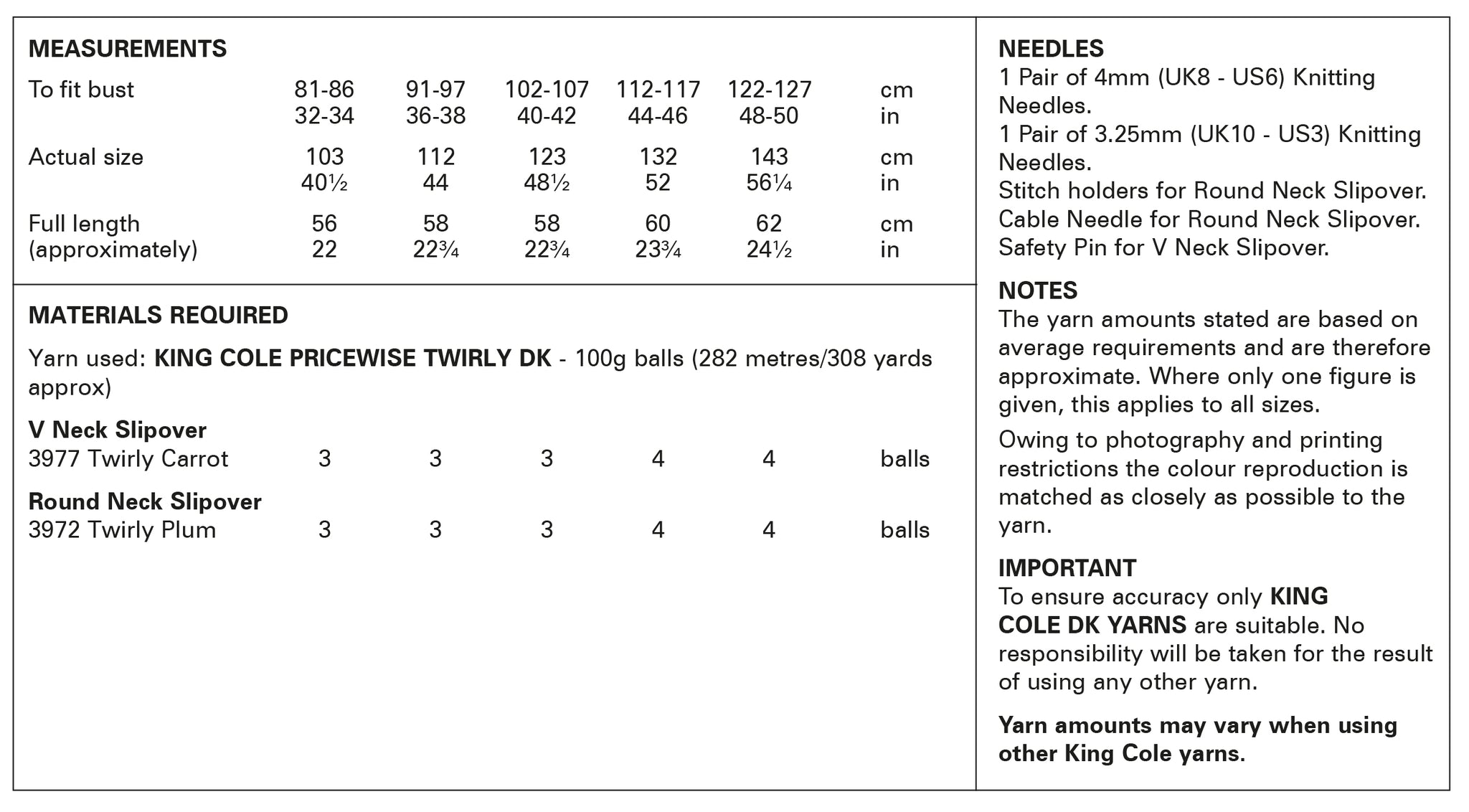 King Cole Knitting Pattern Slipovers Knitted in Pricewise Twirly DK 6136