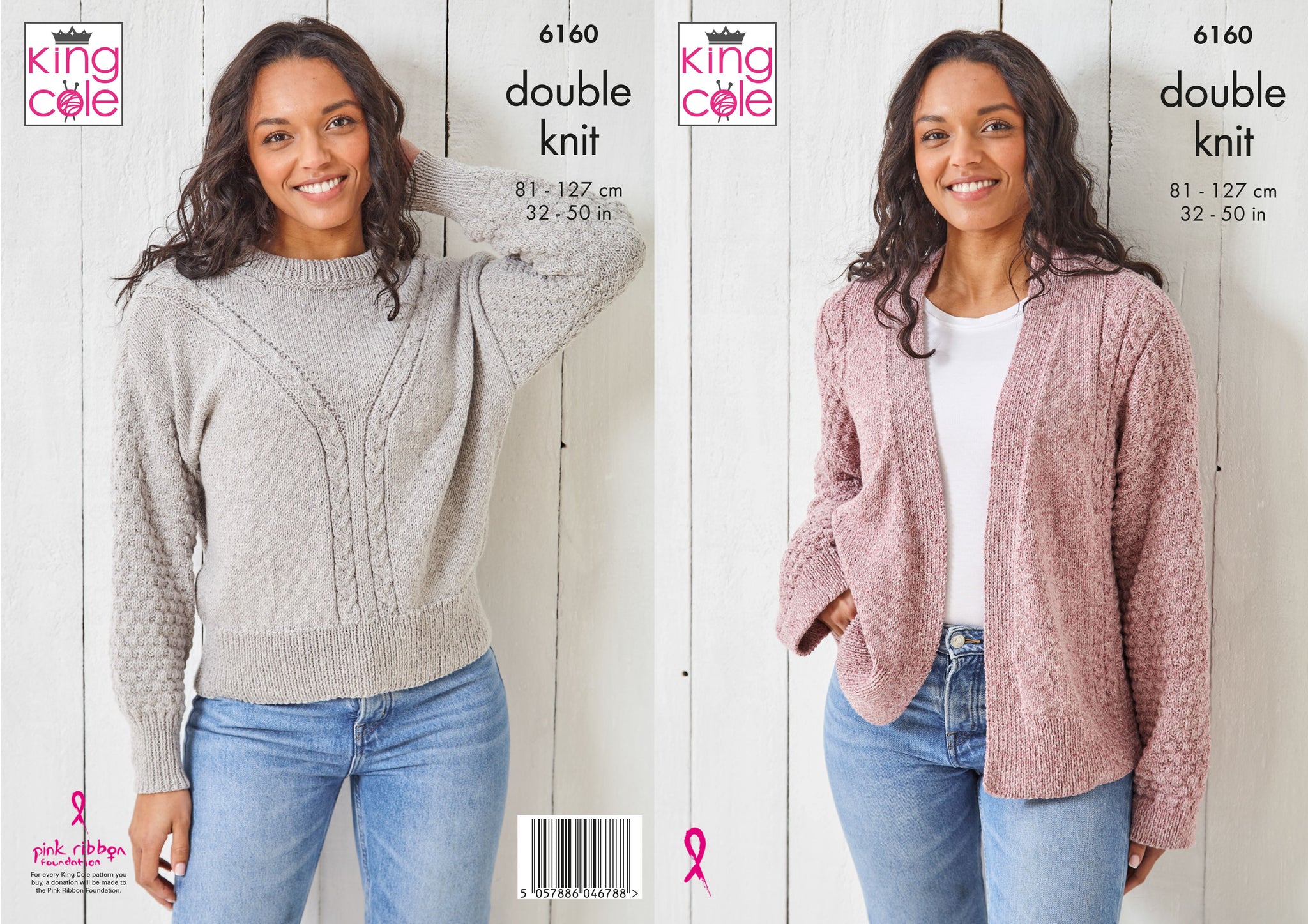 King Cole Knitting Pattern Sweater and Cardigan - Knitted in Simply Denim DK 6160