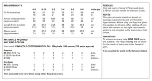 King Cole Knitting Pattern Sweater & Cardigan Knitted in Cottonsmooth DK 6162