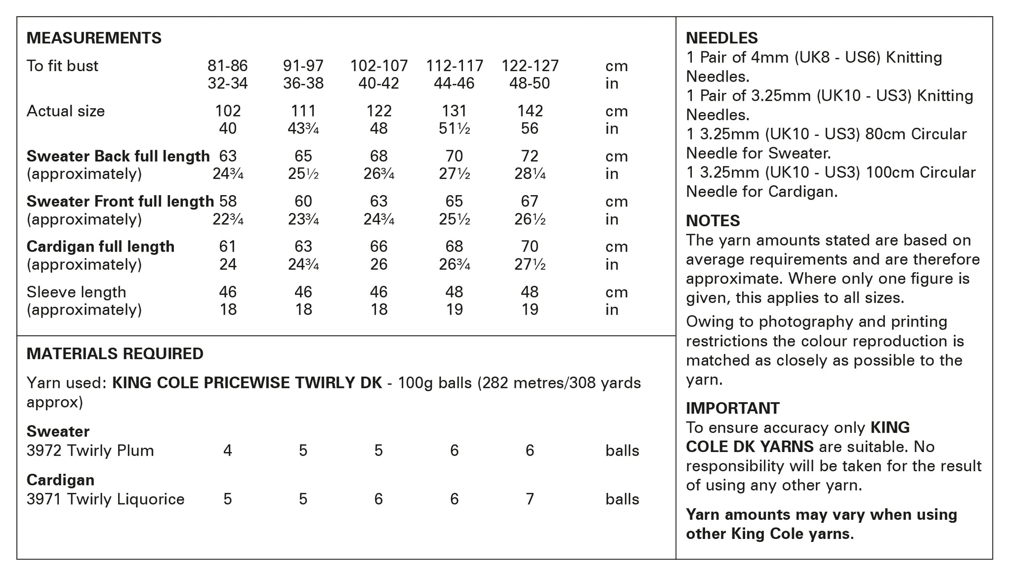 - Pattern sweater and cardigan in Pricewise Twirly DK